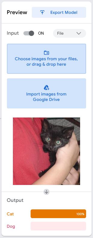 To teach a model to tell the difference between cats and dogs, you need pictures of both. For example, you could use 100–200 pictures of cats and the same amount for dogs.