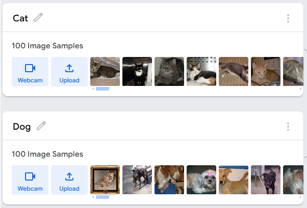 In these examples, an image of a dog and an image of a cat were uploaded.