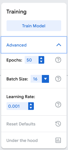 - Epochs: The number of times the model looks at all the training data; more epochs mean the model gets more chances to learn.